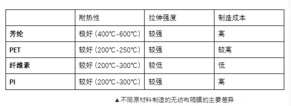 ◤ 不同原材料制造的無紡布隔膜有哪些差異