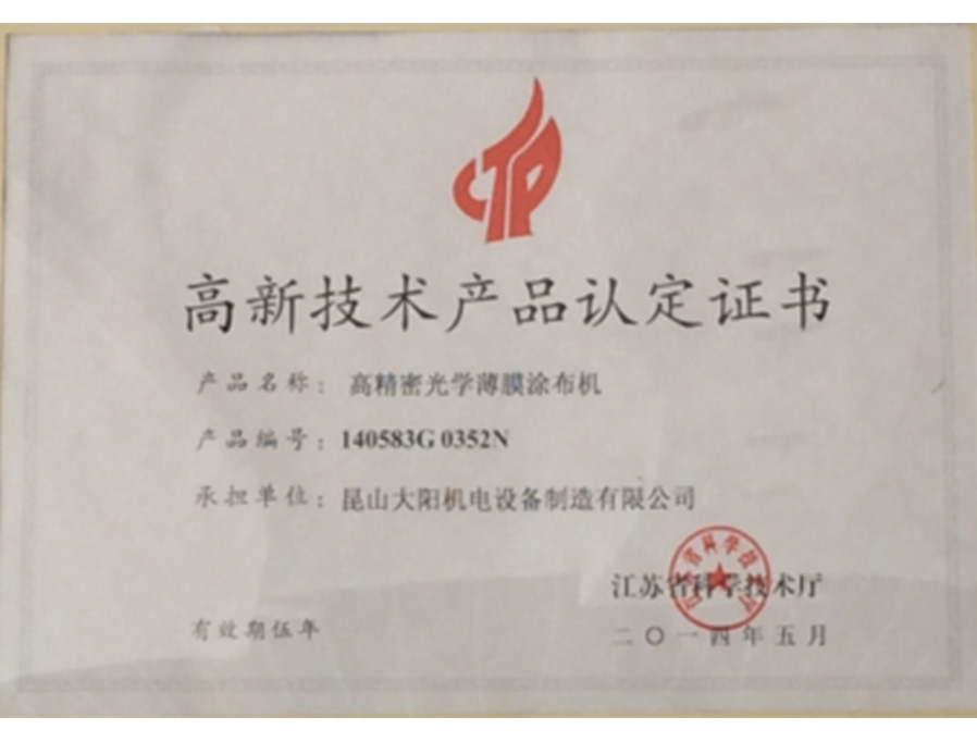 光學(xué)膜涂布機(jī)高品證書