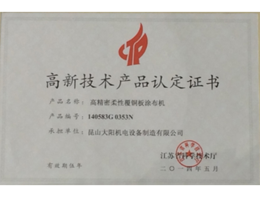 柔性覆銅板涂布機(jī)高品證書
